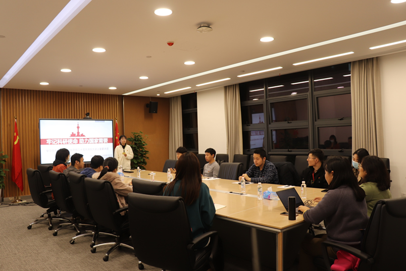 任心仪同志首先带领大家学习了习近平总书记在浦东开发开放三十周年庆祝大会上的重要讲话,并通过数据演示、短片欣赏等形式带领支部成员重温了开发开放以来浦东新区的巨大变迁。她号召支部党员同志们不忘初心,在科研岗位上发挥“螺丝钉”精神,为科技强国助力。之后杨欣怡老师作为土生土长的曹路人分享了她眼中的“曹路变迁”以及她对浦东巨变的切身感受。