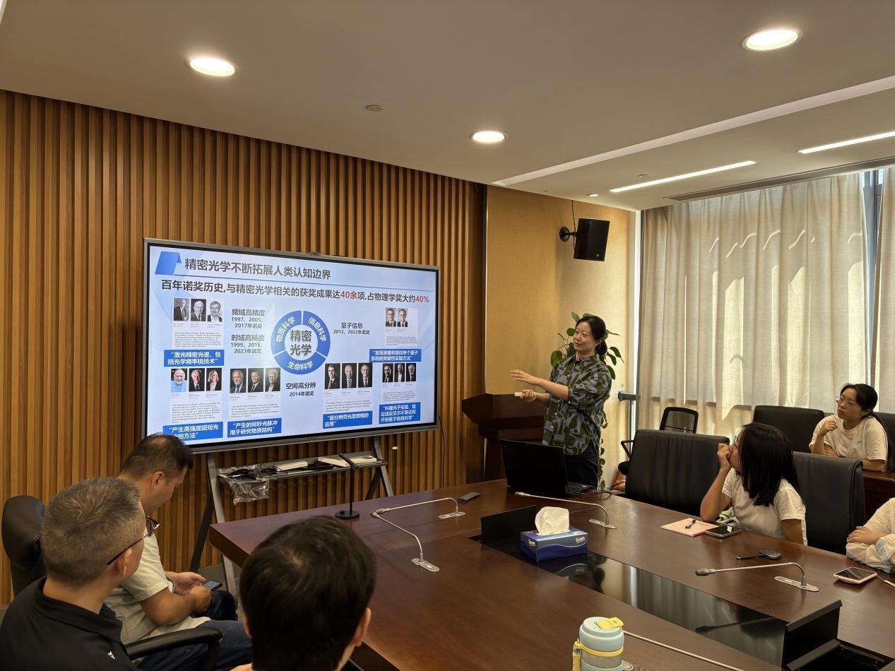 活动伊始,高等研究院副院长李文雪研究员向同学们介绍了精密光谱科学与技术国家重点实验室与高等研究院的发展历程与研究方向,展示了实验室近年来在精密光学领域取得的突破性成果。她鼓励本科生们保持好奇心,勇于探索科研的无限可能。